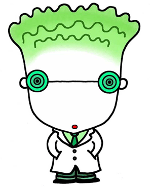 実験中の天才博士ハク才くん。手に持っている薬品の正体は白菜の浅漬けの素かもしれない。